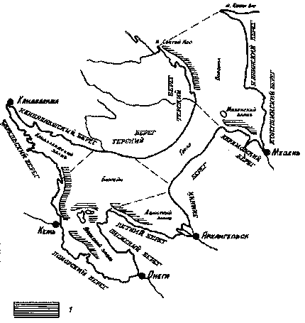 м у западных склонов Тимана. У южных и восточных берегов Белого