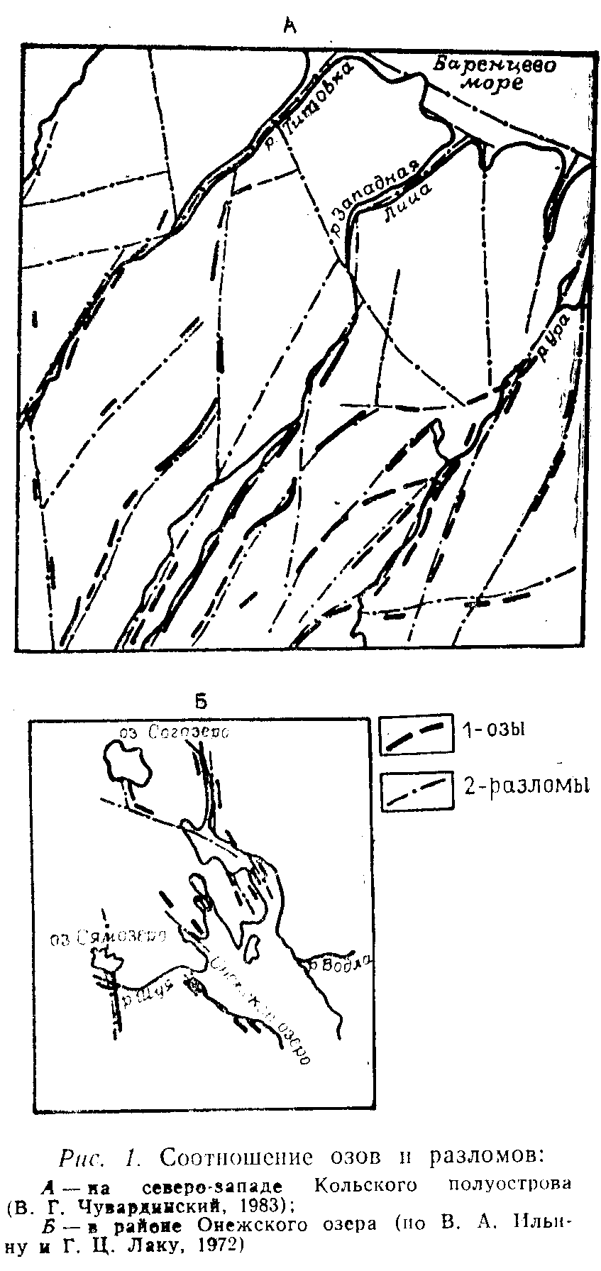 Приуроченность озов к разломам установлена и на Восточно-Европейской