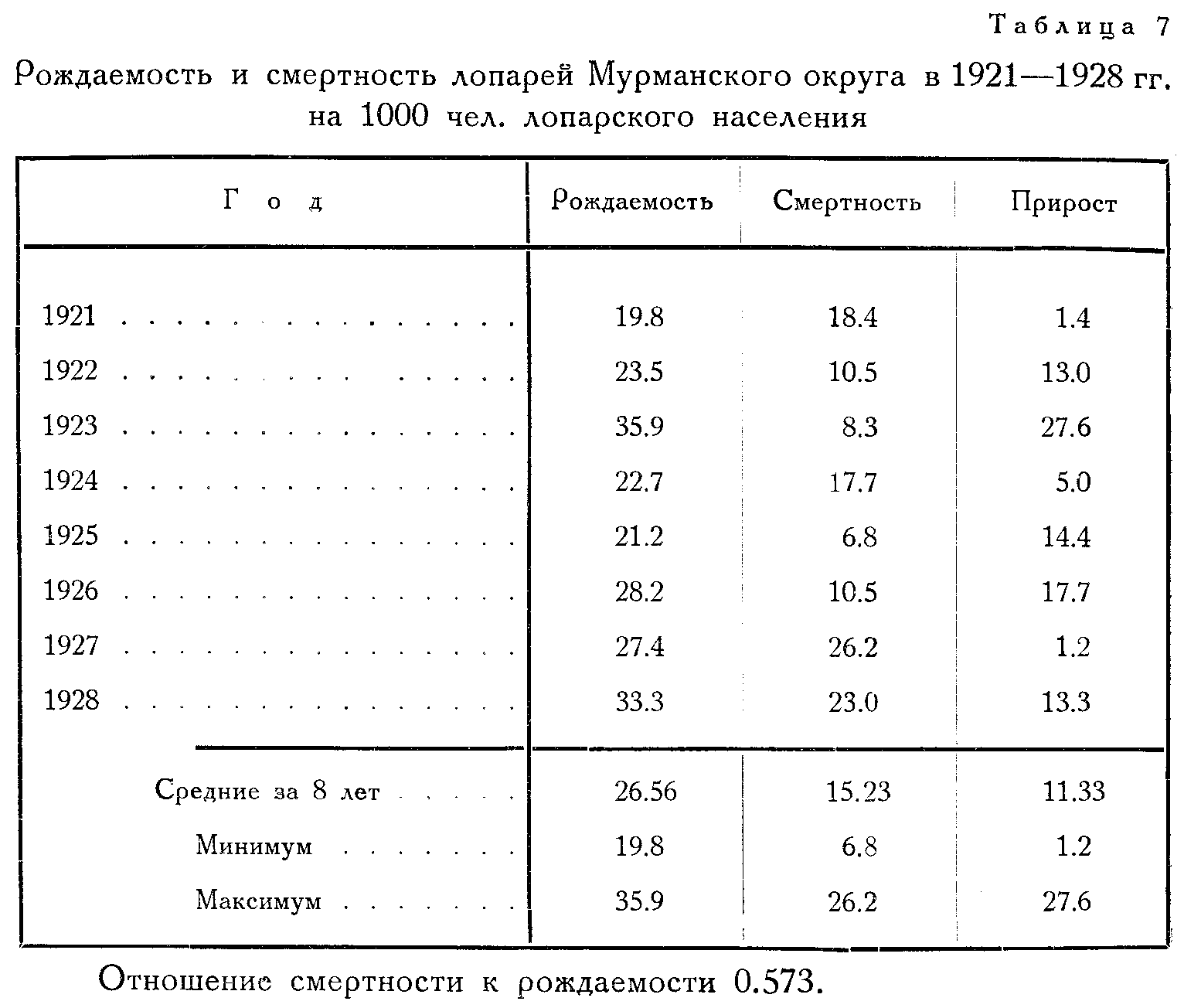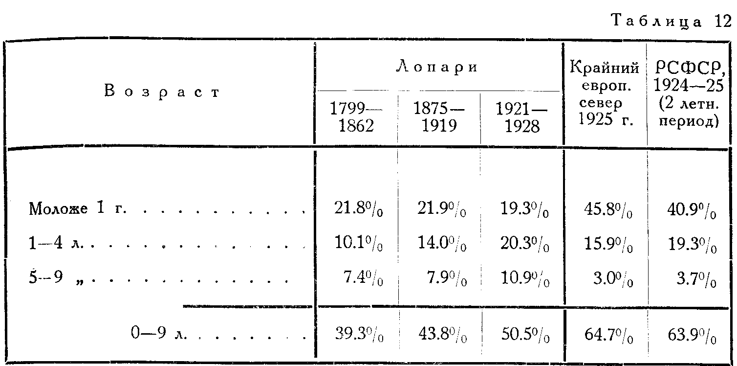 лопарей и причиной этого явления признал высокую детскую смертность.1