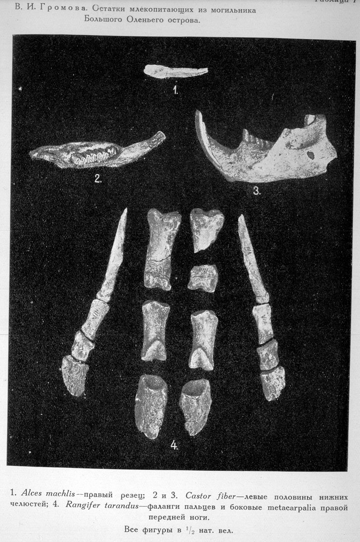 2) Alces machlis О g. При скелете II найден резец лося (правый