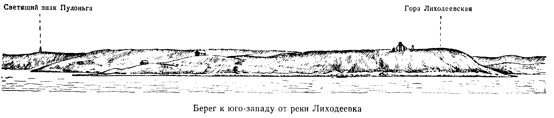 от мыса Медвежий. На горе стоит знак, приметный при плавании вдоль
