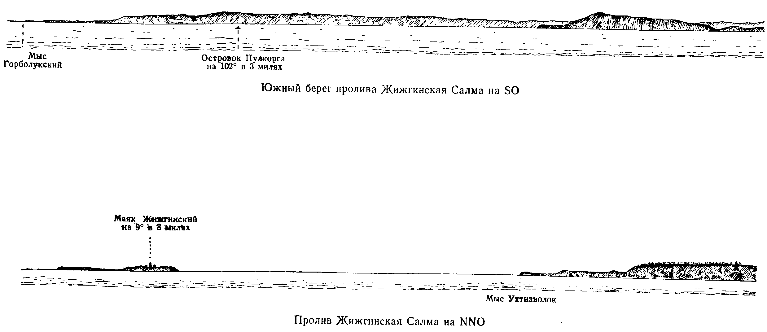 и на всем протяжении пролива прижимает суда к Онежскому берегу и мысу