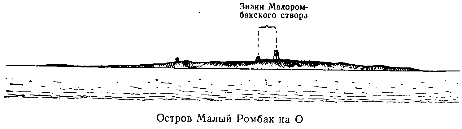 этих отмелей находится наиболее узкое место фарватера; глубины 1,2-1,6