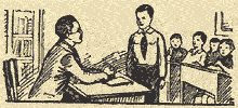 Четвертая средняя школа. 5-й класс "А". Анастасия Афанасьевна Васильева громко и внятно читает ребятам текст диктовки. Многие ученики не сделали ни одной ошибки и получили "отлично". Миша Роминович сделал всего лишь одну ошибку. Только один ученик из всего класса получил "плохо".